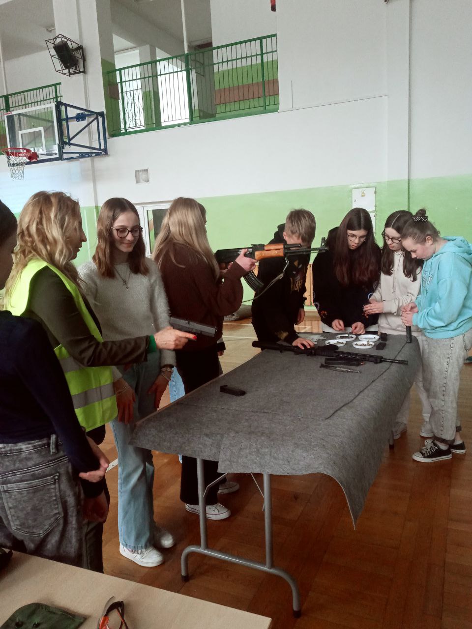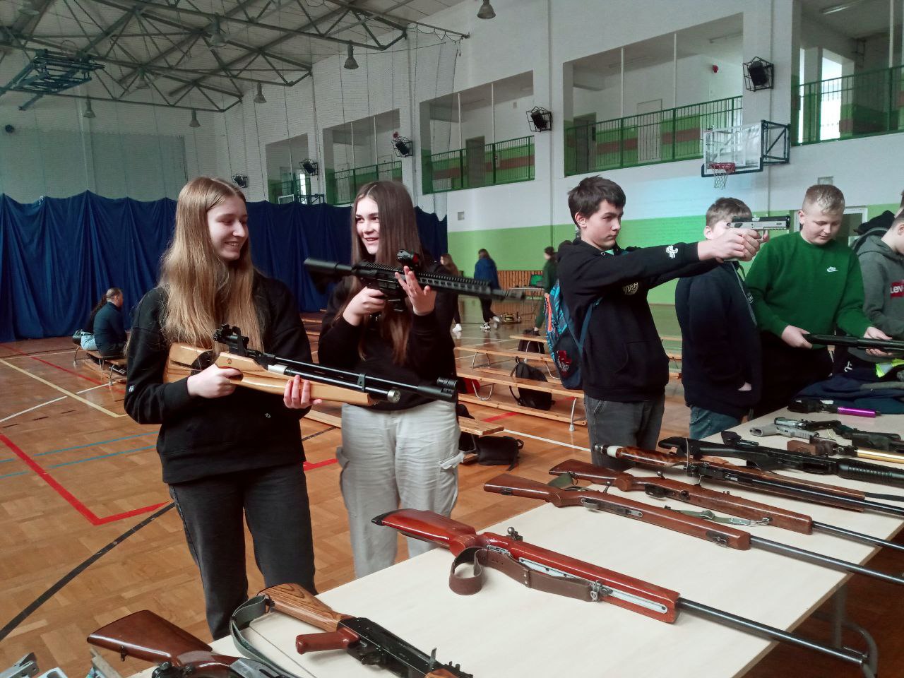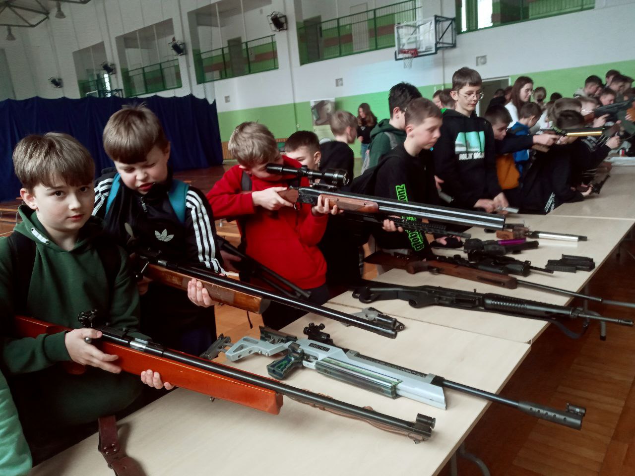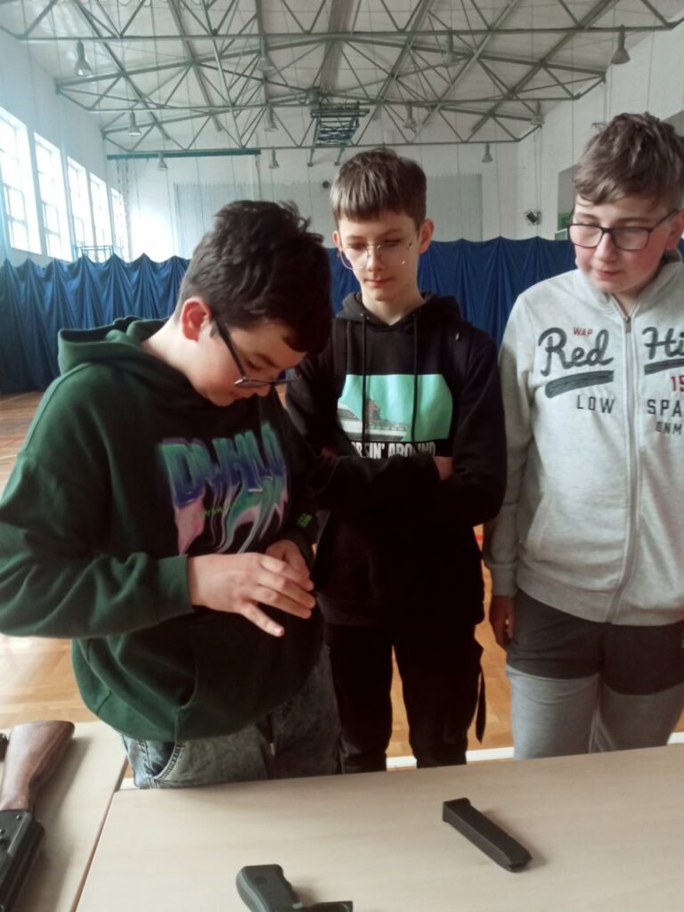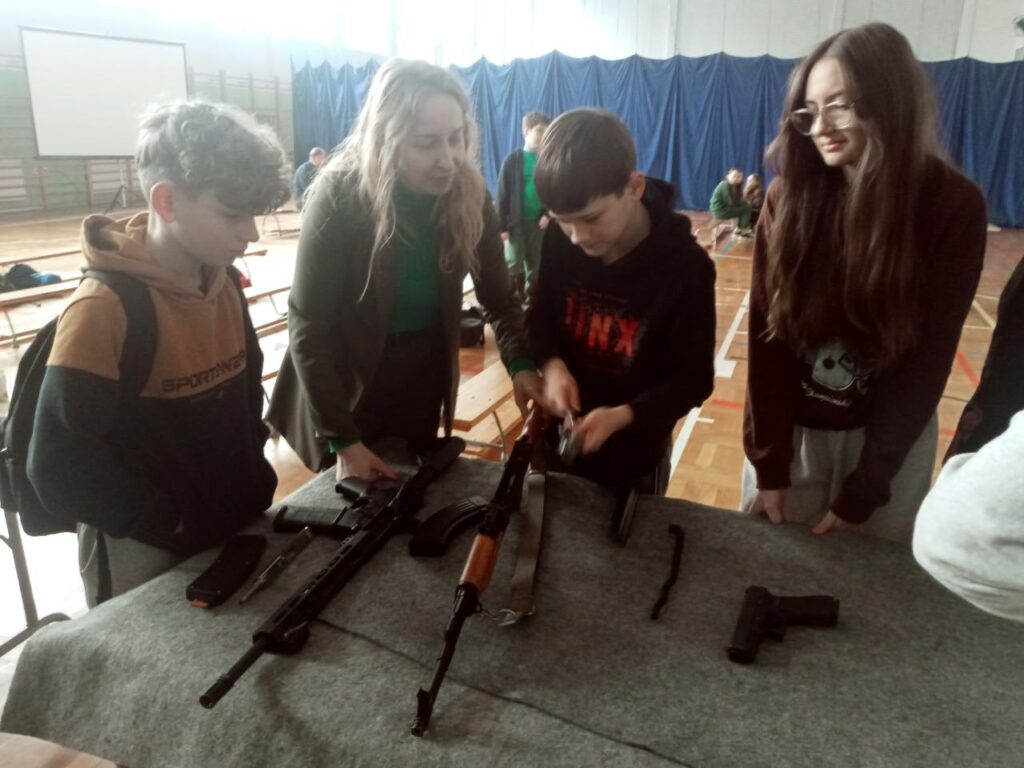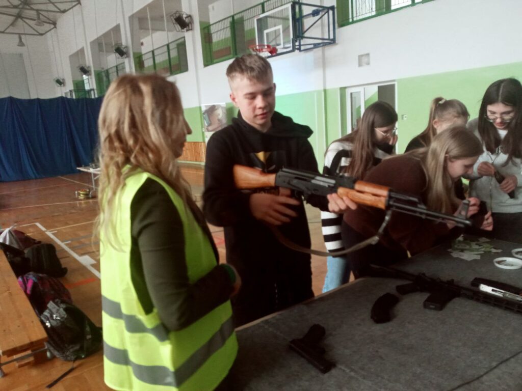 Młodzi uczestnicy warsztatów na stanowisku szkoleniowym mogli spróbować swoich sił w rozkładaniu i skałdaniu AK 47 kaliber 7,62 x 39 mm (popularny Kałasznikow) oraz pistoletu Glock 17 kaliber 9 x 19 mm. Mieli również możliwość ładowania magazynków amunicją treningową o 4 różnych kalibrach, czy też konwersji broni AR-15 z kalibru 5,56 x 45 mm na .22lr