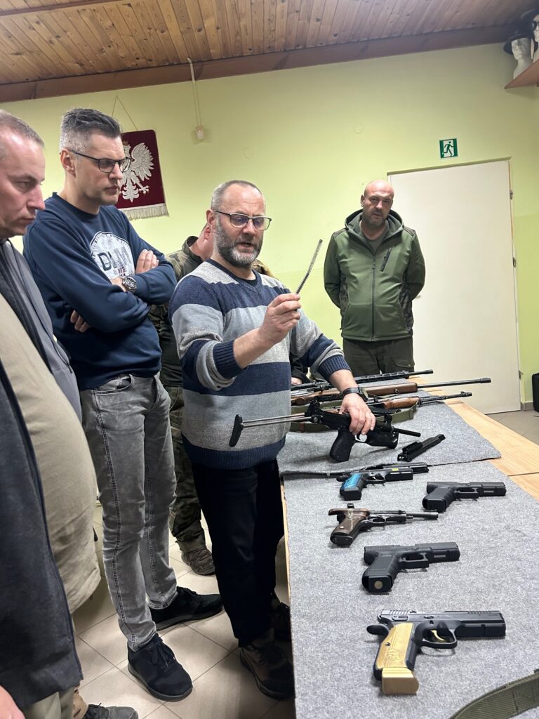 Podczas zajęć omawiano między innymi zagadnienia związane z bezpieczeństwem na strzelnicy, organizacją stanowisk strzeleckich, procedurami prowadzenia strzelań oraz charakterystyką różnych rodzajów broni. W trakcie szkolenia uczestnicy mieli możliwość pracy z szerokim przekrojem broni, obejmującym broń krótką i długą bocznego oraz centralnego zapłonu, strzelby gładkolufowe, a także broń czarnoprochową – karabiny i rewolwery. Nie zabrakło oczywiście zajęć z zakresu udzielania pomocy medycznej, zgodnie z przepisami prawnymi w tym zakresie i szerokim programem kursu Ligi Obrony Kraju. Bezpieczeństwo na strzelnicy to przecież kwestia priorytetowa.